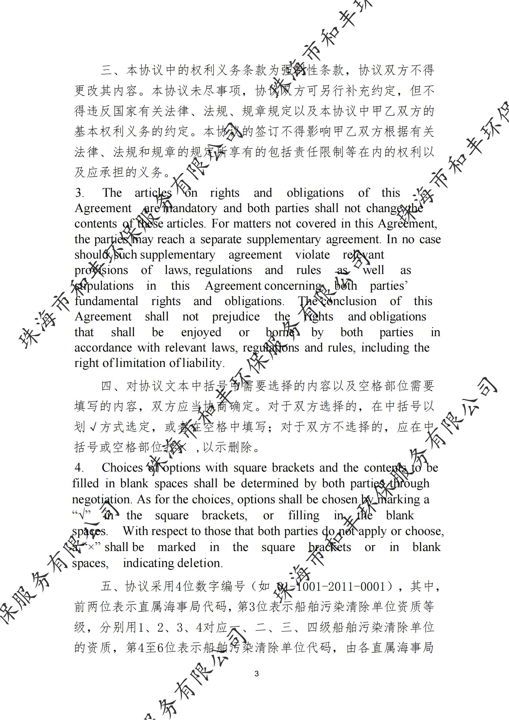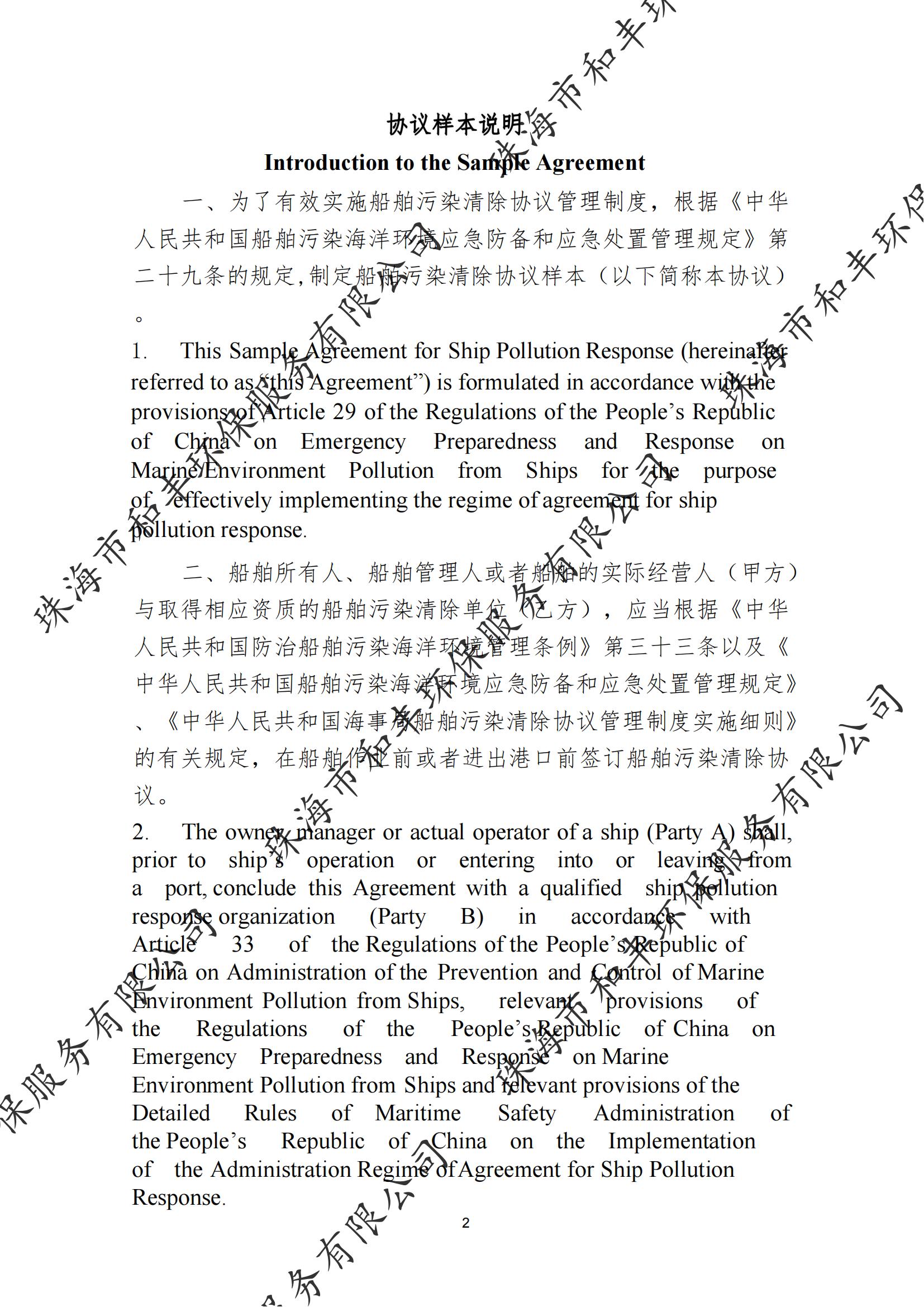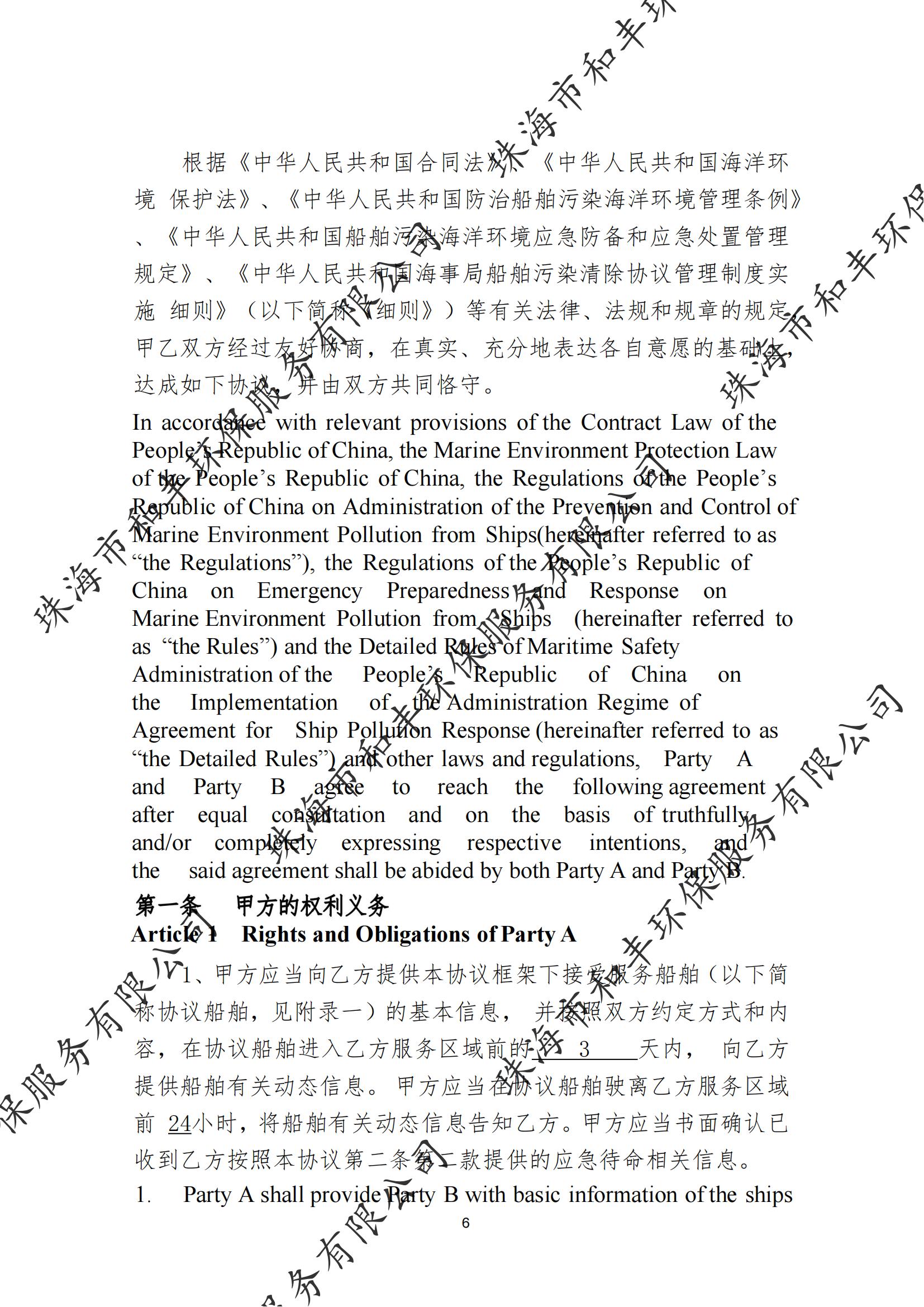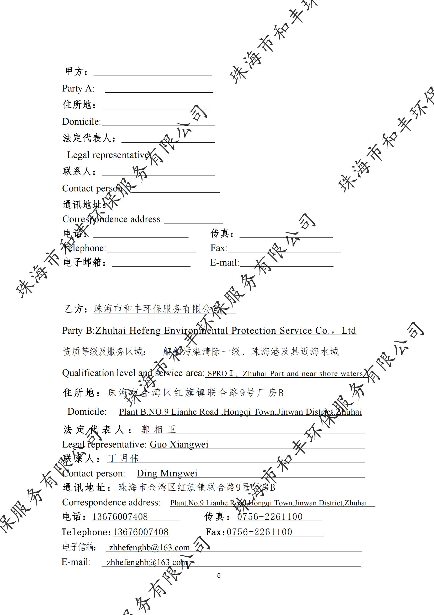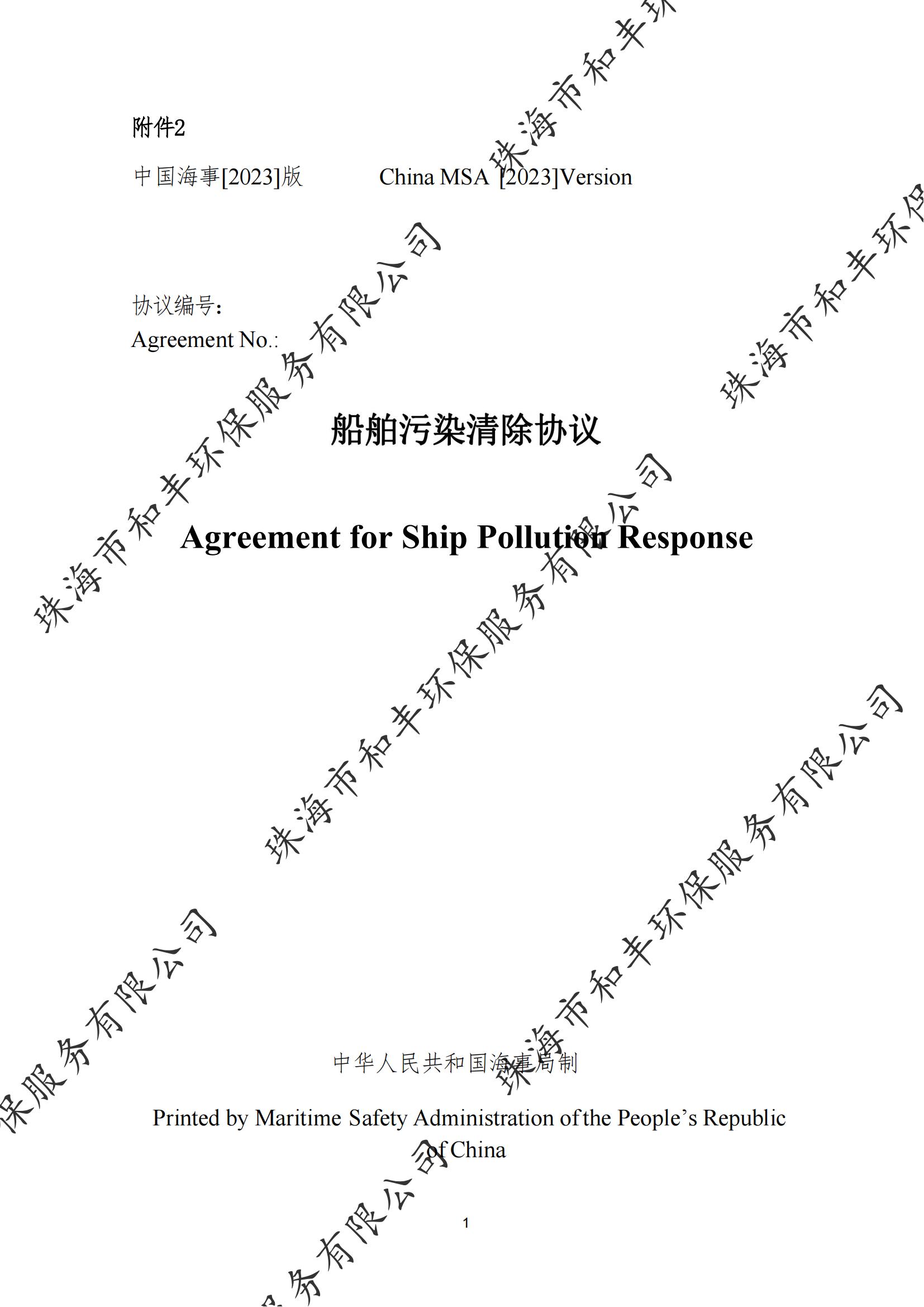 珠海市和豐環保服務有限公司船舶污染清除協議