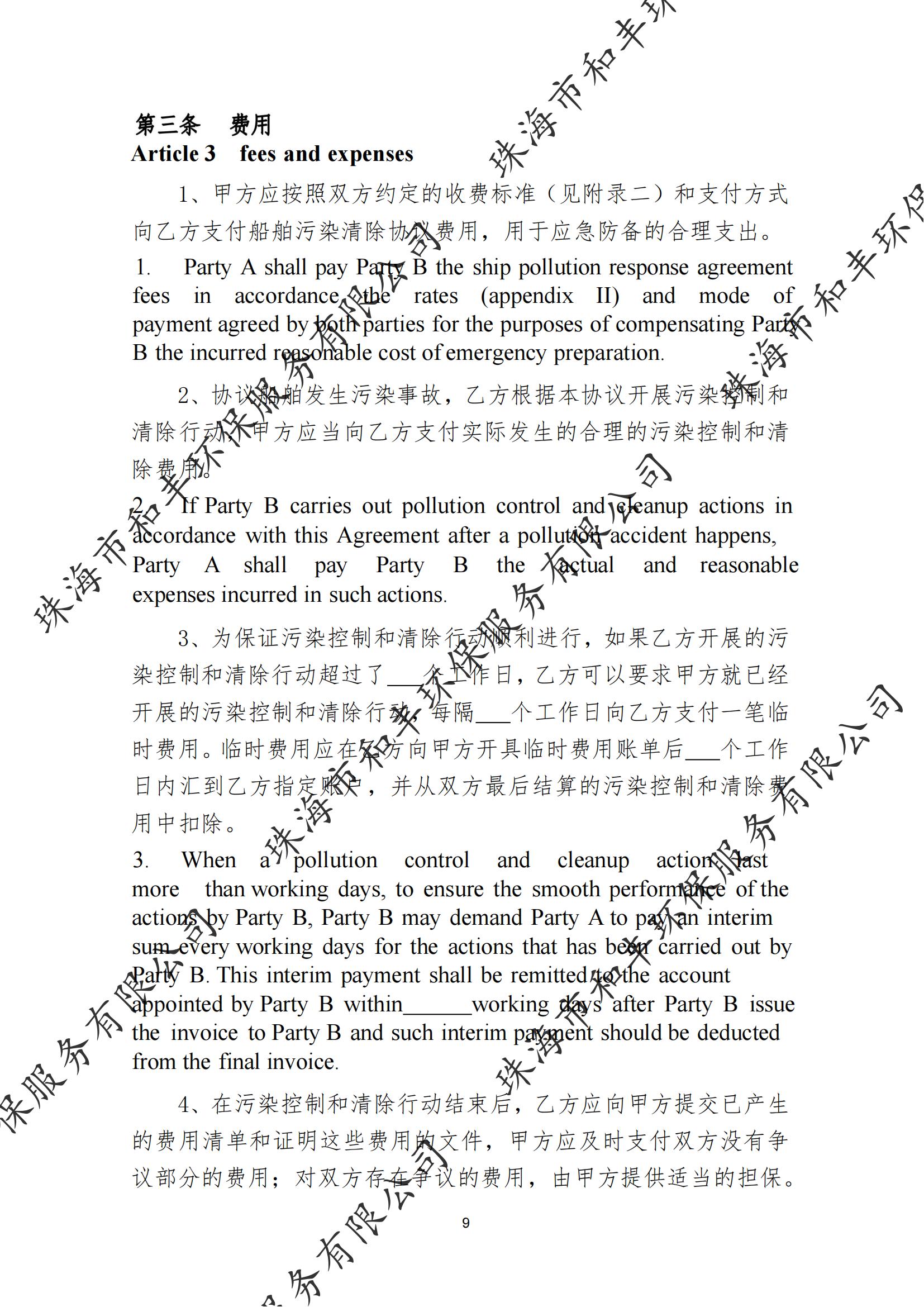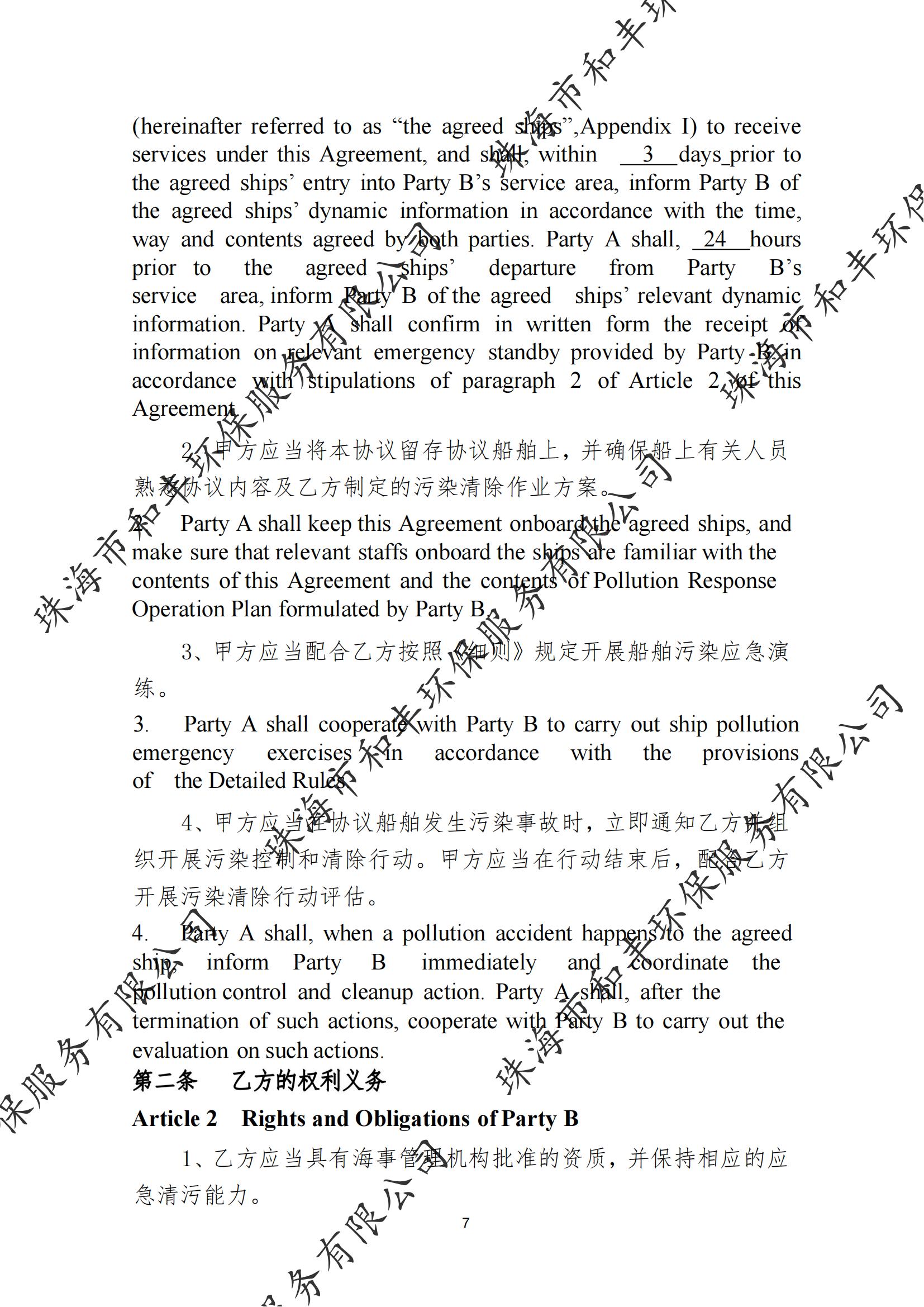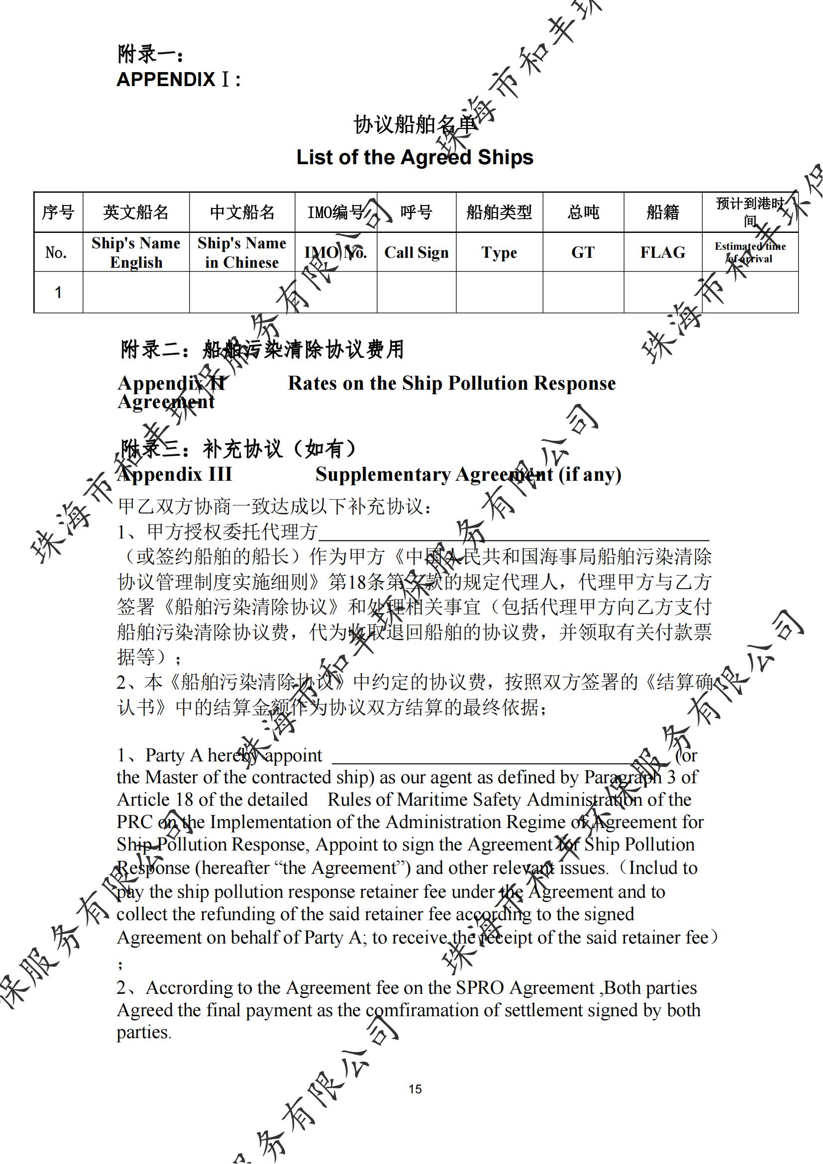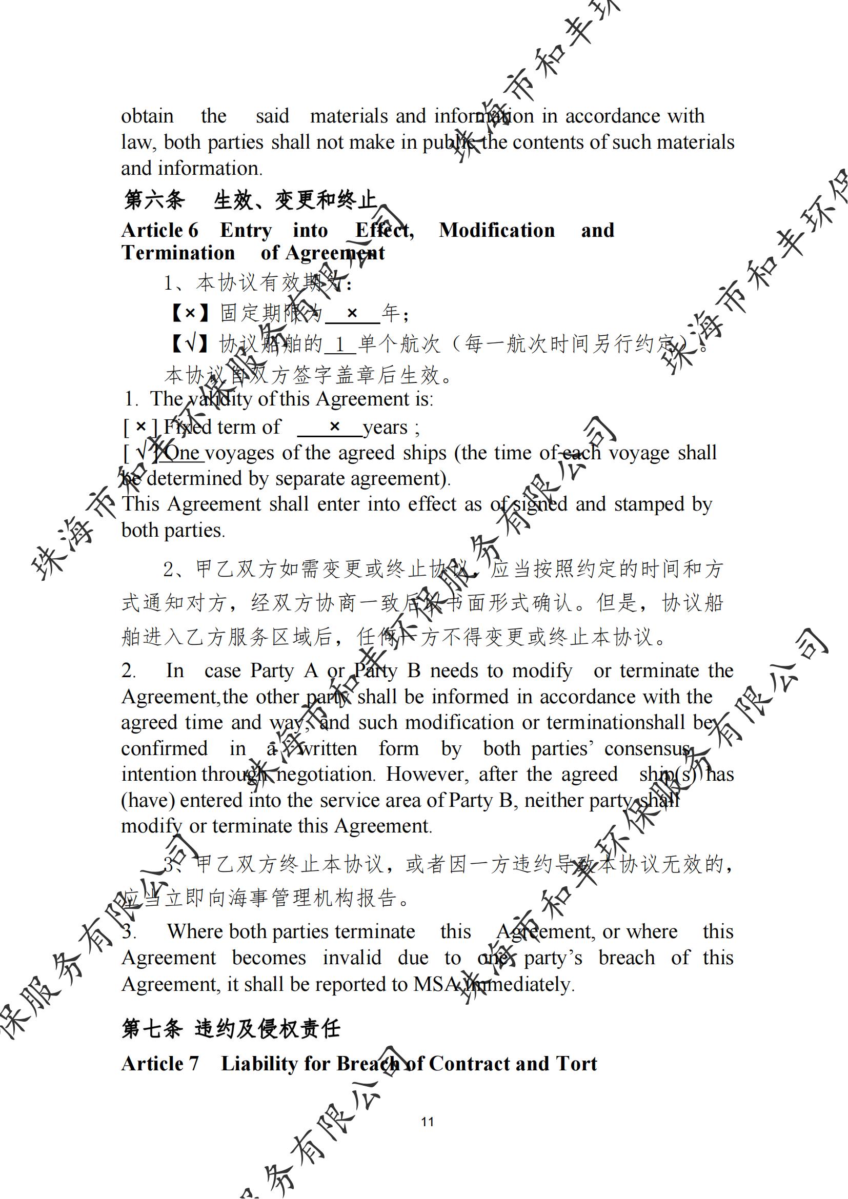 珠海市和豐環保服務有限公司船舶污染清除協議