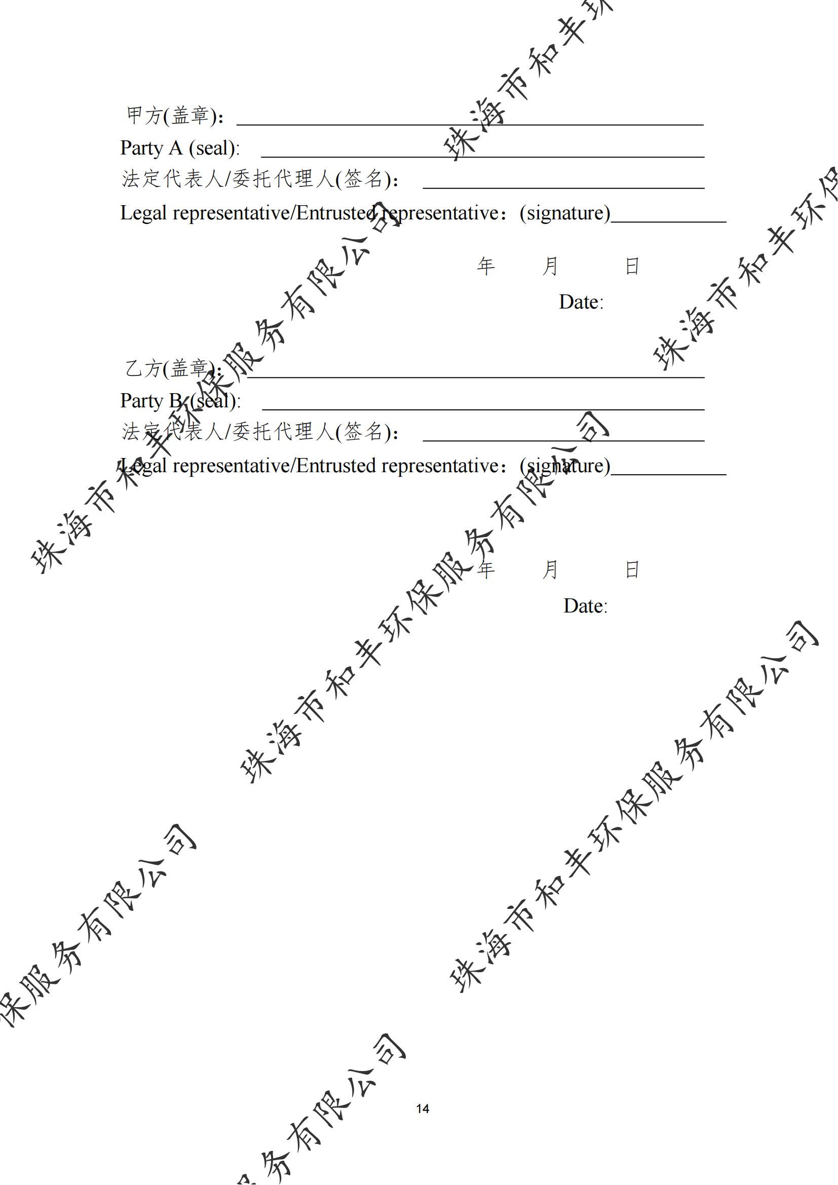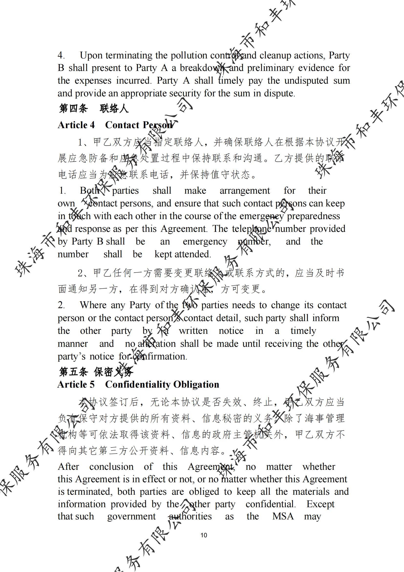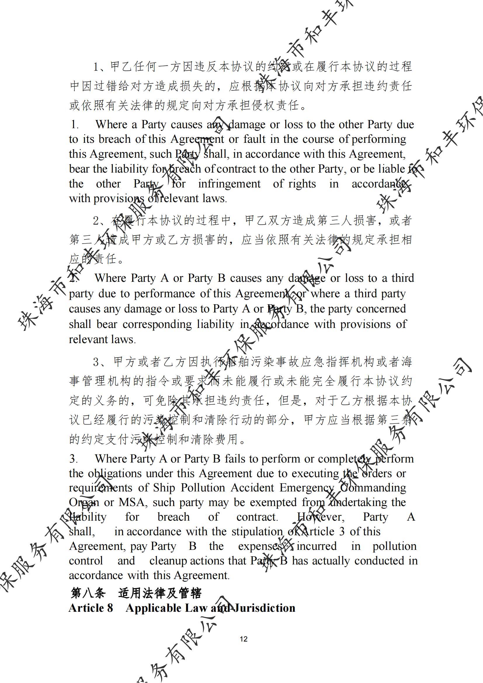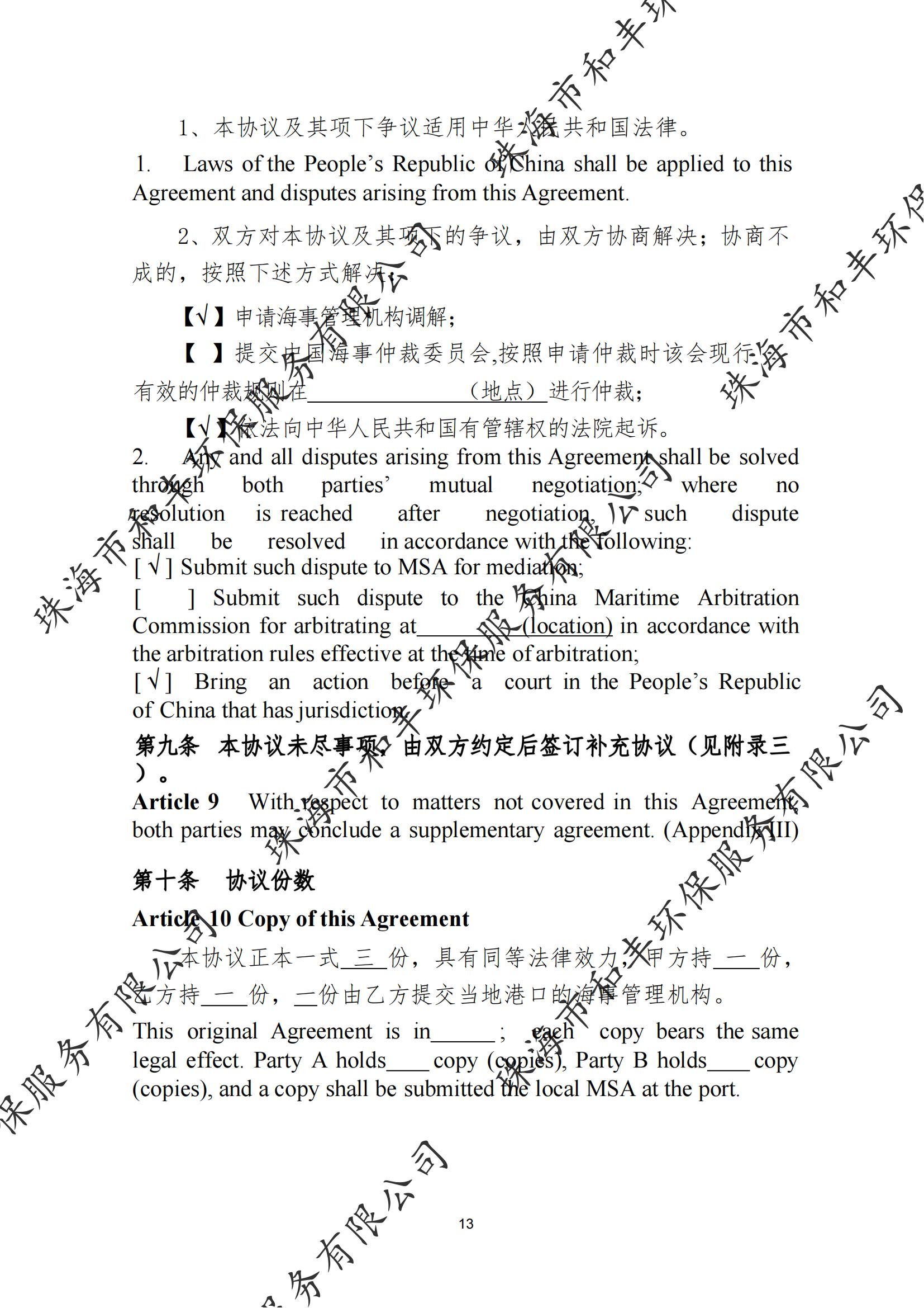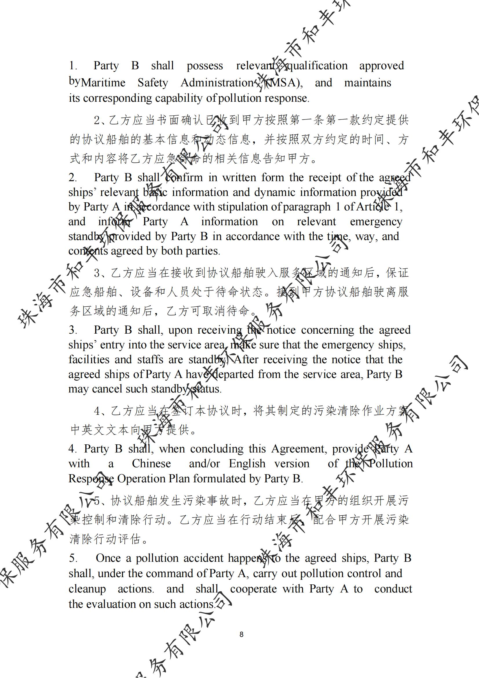 珠海市和豐環保服務有限公司船舶污染清除協議