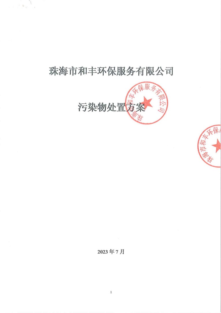 珠海市和豐環保服務有限公司污染物處置方案