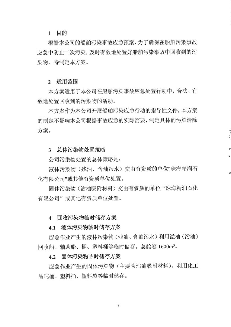 珠海市和豐公司清污協議簽訂情況和應急處置情況
